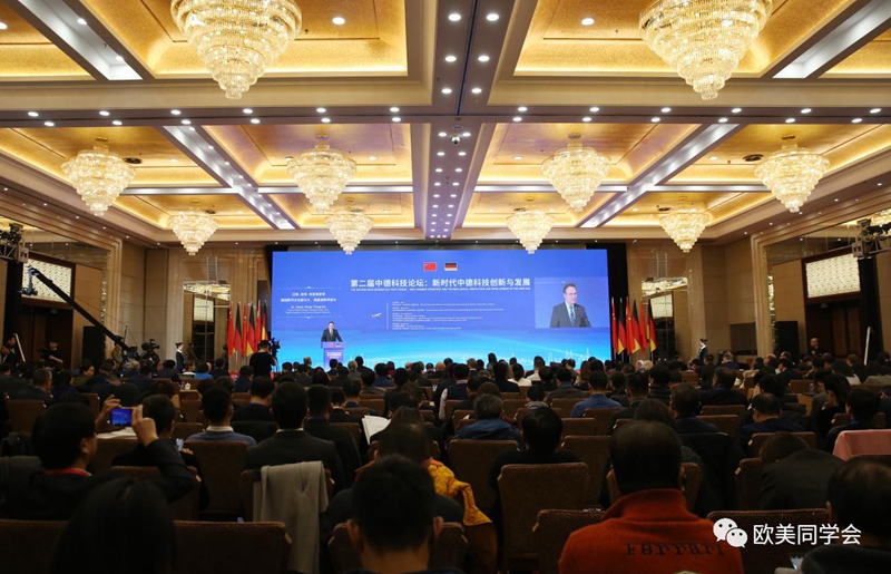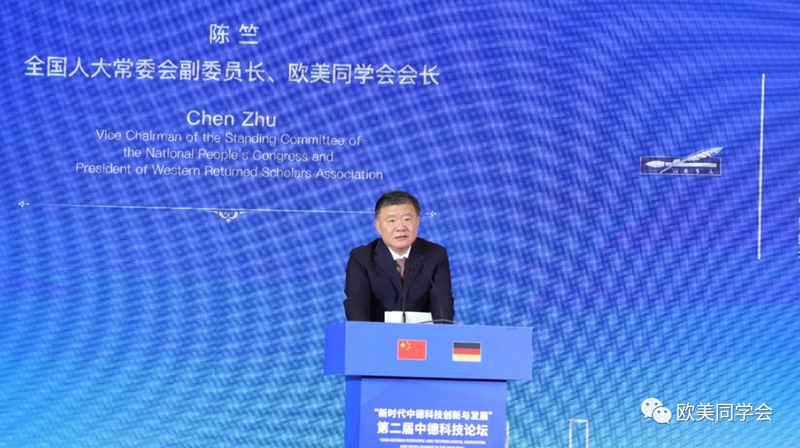 开幕式现场 本届论坛由欧美同学会(中国留学人员联谊会)主办,北京市欧美同学会(北京市留学人员联谊会)承办,以“新时代中德科技创新与发展”为主题。 陈竺在致辞中指出,中德之间已经形成了较为完整的政府间科技创新合作框架,两国科技人员往来密切,科研合作平台广、机制活,产业关联日趋紧密,区域合作热情高涨。中德科技创新合作已成为中国开展国际合作的典范,科技创新领域的合作一直是推动两国关系持续向前发展的重要力量。他希望通过本届论坛,深化中德两国在科技领域的了解和交流,形成命运共同体。加强战略沟通,携手应对挑战;加强优势互补,实现互利共赢;加强人才交流,夯实合作根基。陈竺指出,中国愿同包括德国在内的世界各国一道,加强对话交流,有效管控分歧,增进彼此信任,推动构建人类命运共同体,携手建设更加美好的世界。