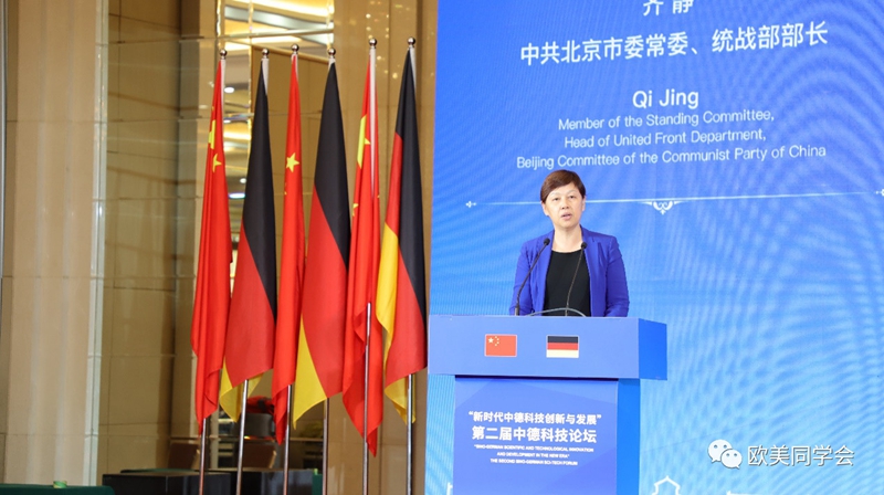 汉斯-彼得·弗里德里希致辞 齐静表示,德国基础研究领先,科技实力雄厚,是公认的创新强国。中国市场规模巨大,产业体系齐全,互联网经济快速发展,在创新方面拥有得天独厚的优势。要大力推进以科技创新为核心的全面创新,努力将北京打造成为世界级的原始创新策源地、新时代深化改革的试验田、引领高质量发展的新高地、全球创新网络的关键枢纽。希望中德两国专家、企业家通过中德科技论坛等平台,汇集众智、增进共识,深化科技创新交流合作,以合作谋共赢、推动两国经济社会健康发展,为全球经济注入新动力。