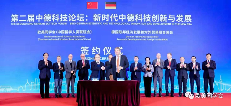 2019年11月19日,第二届中德科技论坛在北京开幕。全国人大常委会副委员长、欧美同学会(中国留学人员联谊会)会长陈竺,德国联邦议院副议长汉斯-彼得·弗里德里希,北京市委常委、统战部部长齐静,北京市人大常委会副主任、北京市欧美同学会会长闫傲霜,德国联邦议会议员、自由民主党外交委员会委员亚历山大·库利茨出席开幕式并致辞。欧美同学会(中国留学人员联谊会)副会长程东红、陈十一,欧美同学会(中国留学人员联谊会)秘书长王丕君,副秘书长程洪明,中科院院士、北京市欧美同学会海外名誉副会长王中林,北京市欧美同学会秘书长王璞,德国联邦经济发展与对外贸易联合总会主席舒曼,德国柏林查理特医科大学中国生命科学理论·历史·伦理研究所所长文书德,德国联邦议会议员罗斯,中德科技园控股有限公司董事总经理、德国工业4.0之父孔瀚宁教授特派代表德费思和中外嘉宾300多人参加开幕式。开幕式由欧美同学会副会长刘利民主持。