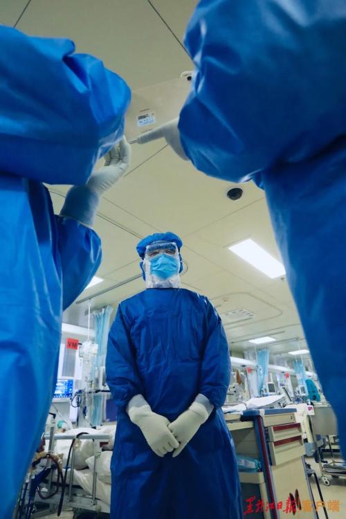 身体在层层防护服里 湿了干,干了湿 抢救生命夜不眠 昼不息