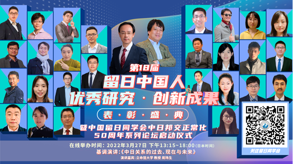 来自中日学界、政界、商界、民间友好团体的中国留日学者及留学生等共计100余人通过线上会议方式参加了本次活动,通过在线直播平台寇享学术观看实况的留日学长超过了3000人。 中国留日同学会江岩会长致开幕辞,中华人民共和国驻大阪总领事薛剑先生为留日同学会发来贺词。 日本立命馆大学周玮生教授以“中日关系的过去、现在与未来”为主题作基调演讲。 29位华人学者分别获得中华人民共和国驻日本国特命全权大使奖、中华人民共和国驻大阪总领事奖、大阪府知事奖、京都府知事奖、兵库县知事奖、神户市长奖、京都市长奖、中国留日同学会奖、最佳创业奖、优秀青年奖等18种奖项,获奖人的研究内容包括人文社科、生物医药、信息半导体、材料科学等领域的最新研究成果。 大会最后,获得人文科学领域研究者功劳奖(中华人民共和国驻大阪总领事奖)的刘庆红教授和自然科学领域研究者功劳奖(中华人民共和国驻日本国大使奖)的宋轩副教授分别发表获奖感言。